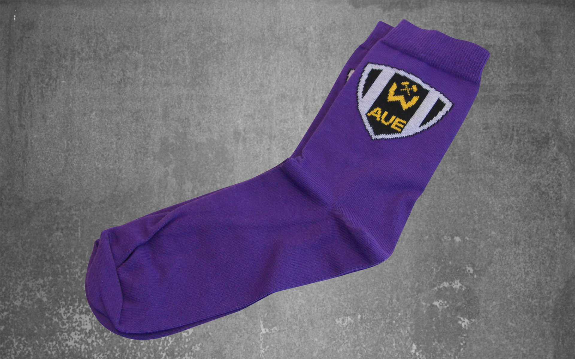 1 Paar Socken lila mit Logo Wismut. 80% Baumwolle, 20% Polyamid, Größen: 35 bis 38